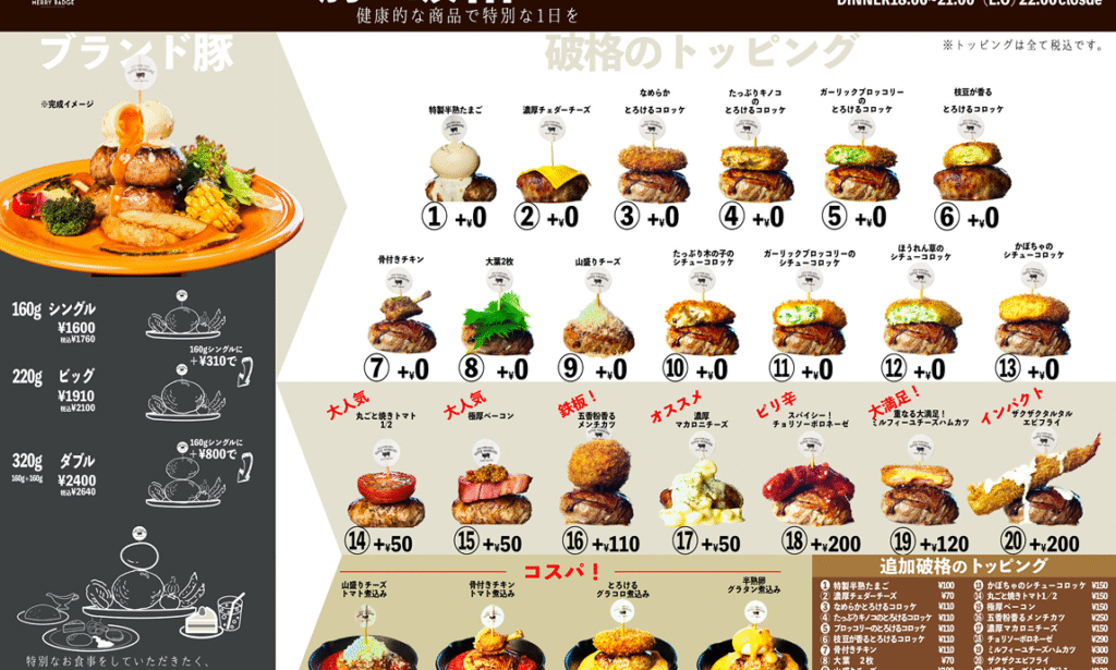 お好きなトッピングで、贅沢なハンバーグをご堪能ください♪